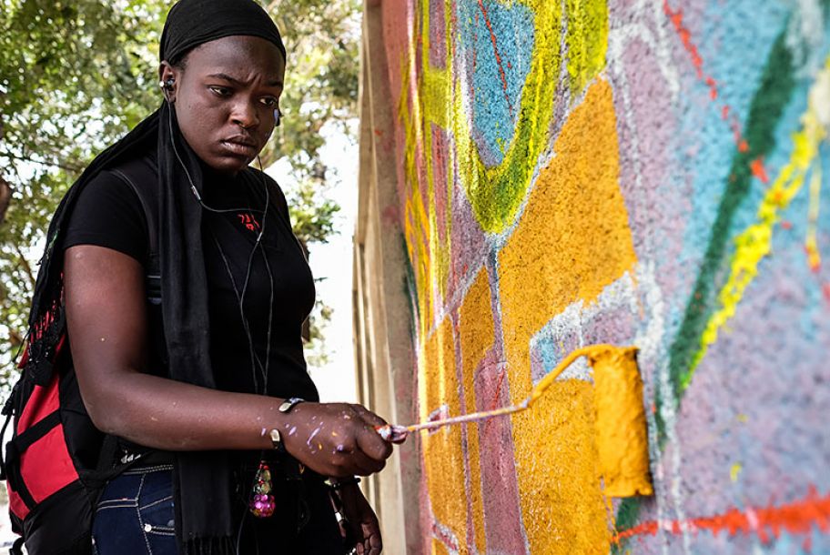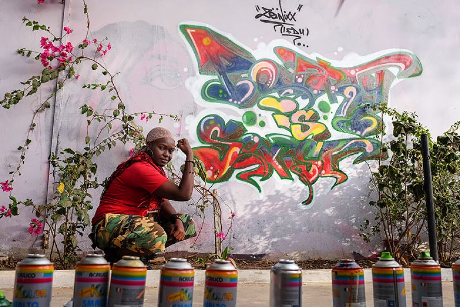 Dieynaba Sidibe ist eine senegalische Streetart-Künstlerin. In ihren Werken thematisiert sie weibliche Rollenbilder und Gleichberechtigung. Sie musste innerhalb ihrer Familie dafür kämpfen, Kunst machen zu können, denn ihre Mutter wollte, dass sie Ärztin werden sollte. Also bringt sie auch immer wieder Emanzipationsgedanken in ihre Arbeit ein.